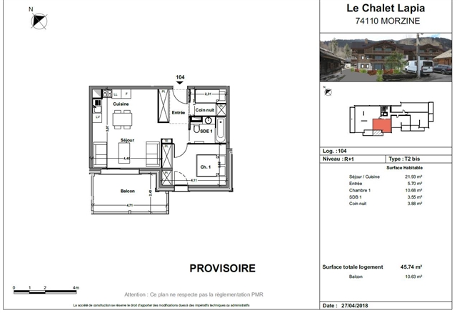 Le Chalet Lapia development is situated in a very sought after area of Morzine. Only a 5 minute walk into town yet on one of the quietest roads of the village. It can accommodate up to 6 people. On the first floor of a brand new residence (with lift), it comprises: - Entrance with storage - Living space with kitchenette open onto the lounge/dining area, sofa-bed, south exposed balcony - Double bedroom with storage - Bathroom with bathtub and shower screen and toilet - Cabin with two single bunk beds Wifi, double garage, ski locker Sets of beds linen and towels provided Final cleaning included Security deposit and tourist tax to be paid before arrival No smoker and no pet Summer Multipass memberAIRPORT TRANSFERS - LIFT PASSES - SKI & BOARD HIRE